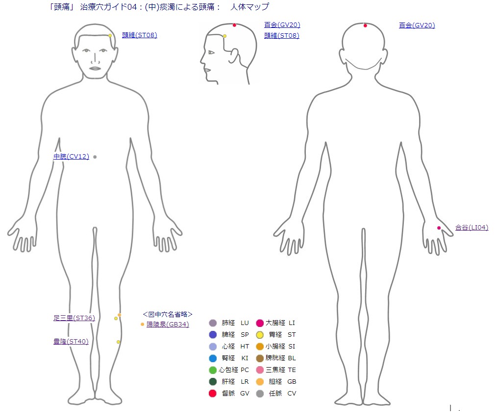 患者の症状を選択 すると、その治療に適した複数の経穴が表示されます。