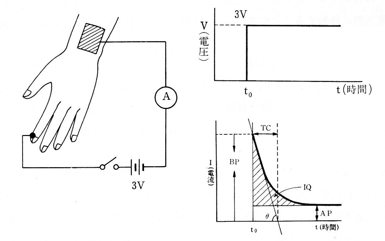 しかし、上記皮膚の通電電流は、10μs程度でほぼ一定値まで低下します。