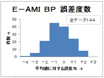 ![]() 上の図は、1回の測定値ががそのグループの平均値に対して何%ずれたか、 %ごとに度数を計数したものです。 |