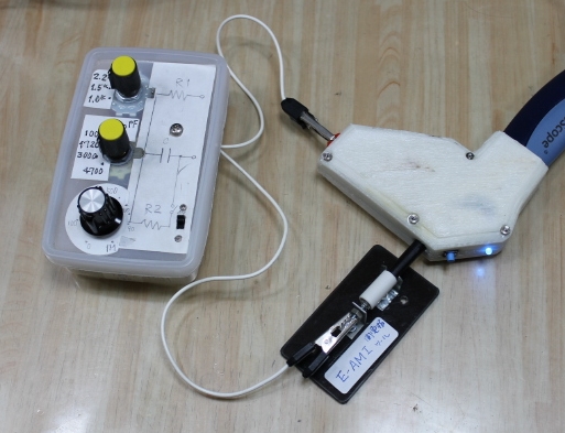 ![]() E-BI装置に試験回路を接続 |