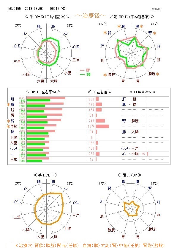 治療前後に経絡測定(6/12)