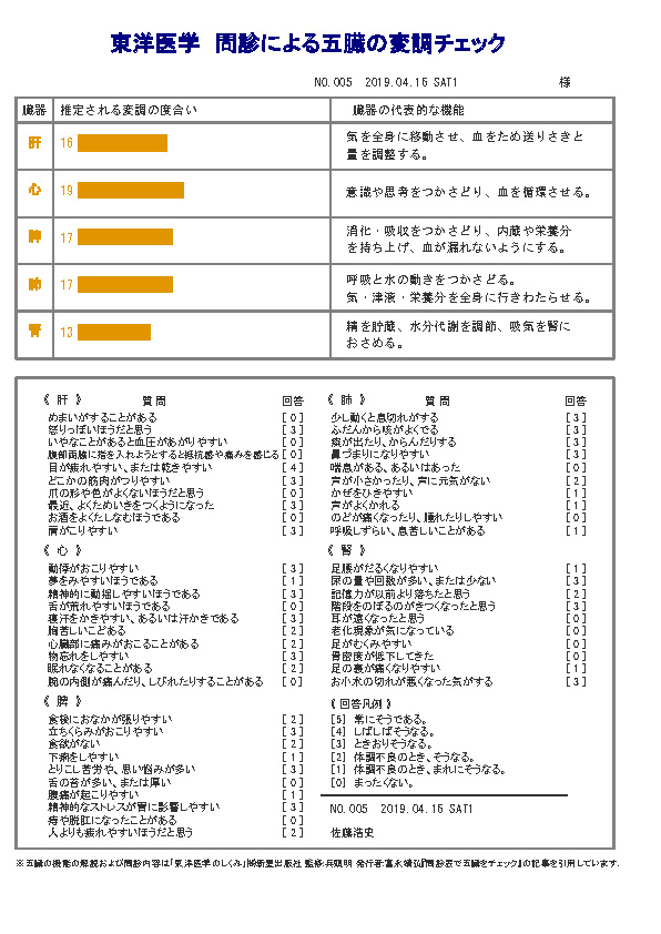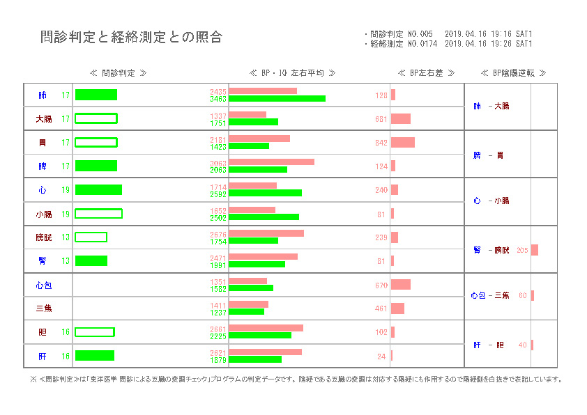 問診による五臓の変調チェックと経絡測定(1/6) 〜治療データはない〜