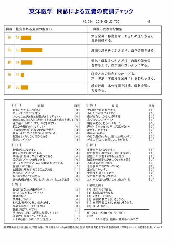 問診による五臓の変調チェックと経絡測定(7/9)
