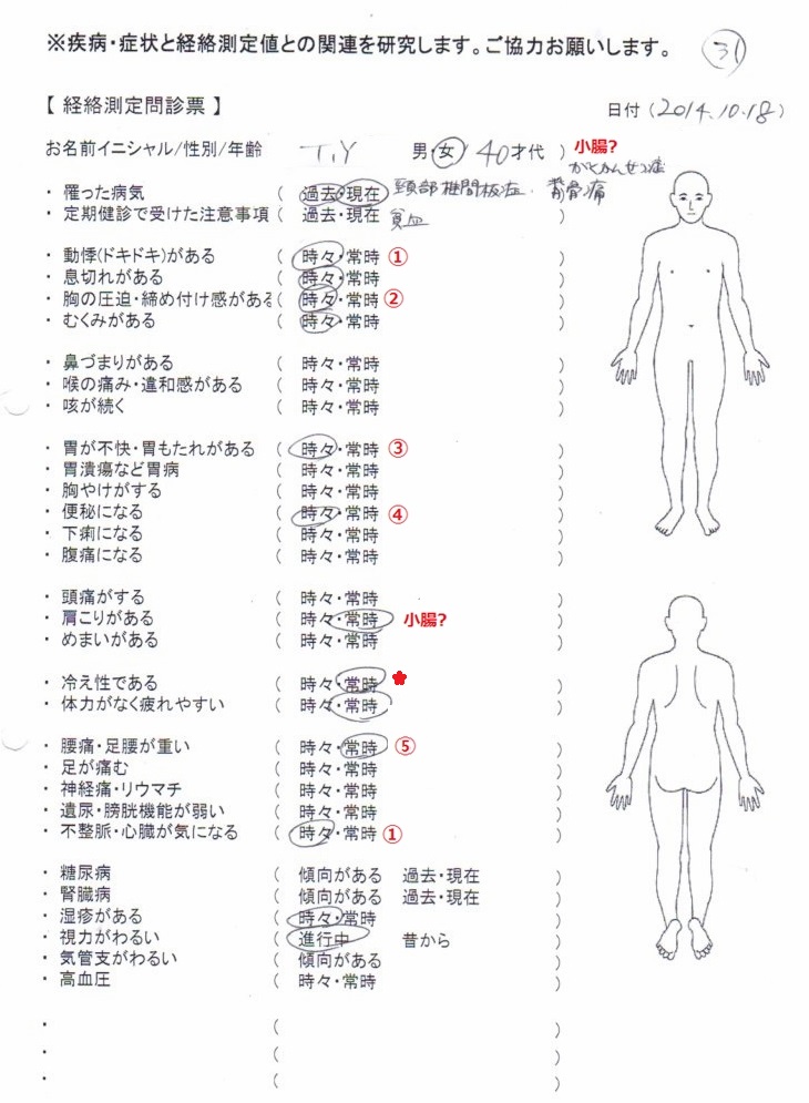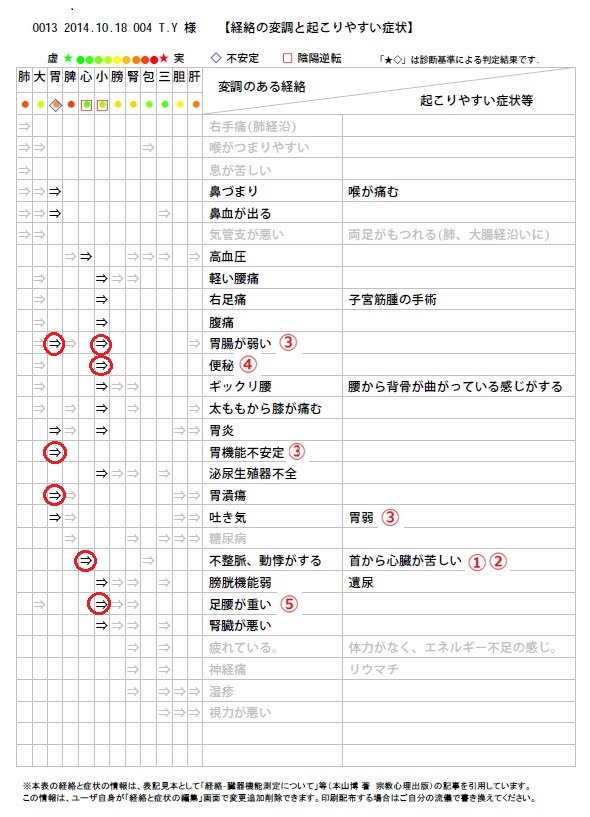 「変調経絡と起こりやすい症状」と問診票との照合 #31