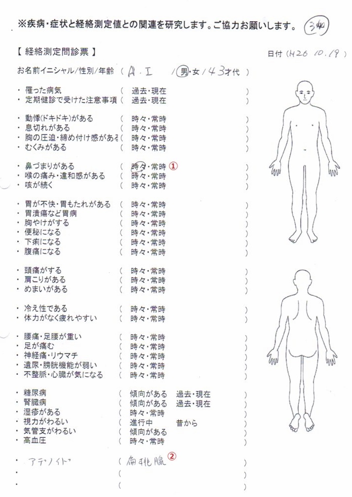 「変調経絡と起こりやすい症状」と問診票との照合 #34