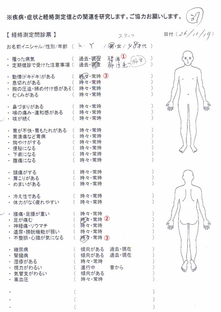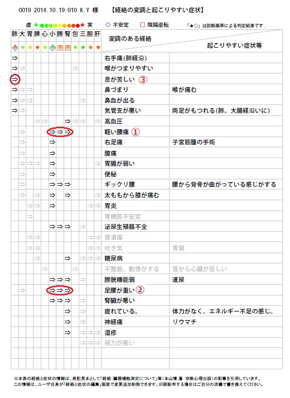 「変調経絡と起こりやすい症状」と問診票との照合 #37