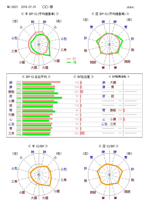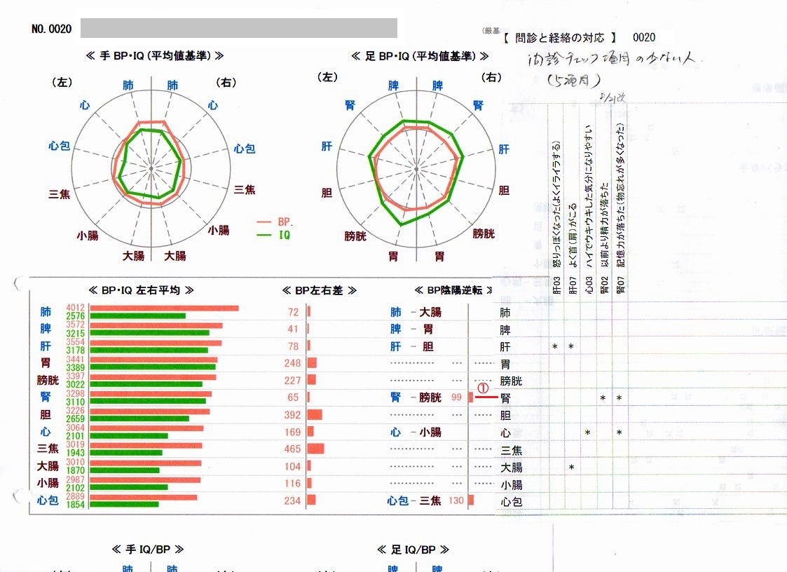 そこで、カルテの問診票が経絡測定結果どれくらい反映されているか検証してみました。