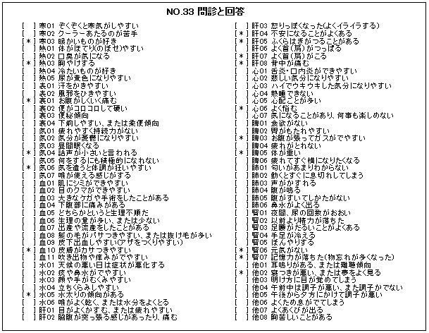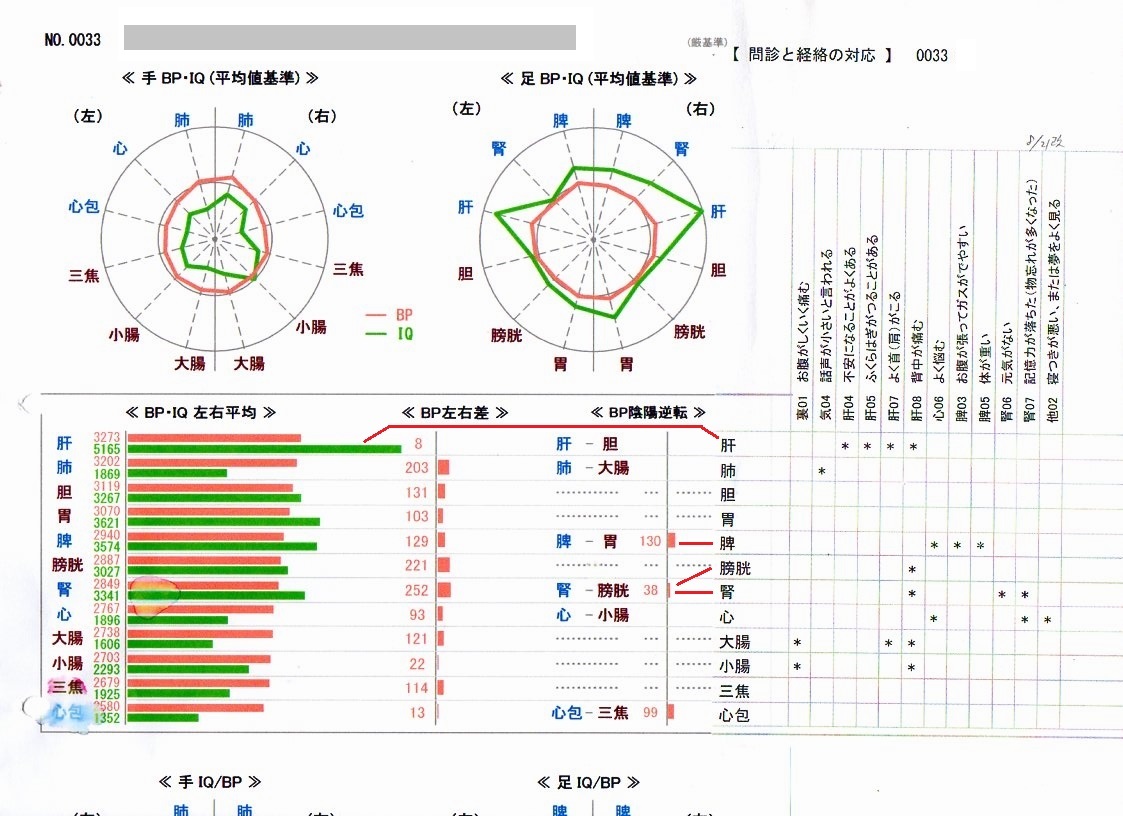 この度、経絡測定装置(A-BI)をご利用になっているS治療院から患者さん9名分のカルテ情報を提供して戴きました。 そこで、カルテの問診票が経絡測定結果どれくらい反映されているか検証してみました。 そのために事前に作成した 問診票と経絡との関連データ を利用しています。 そのために事前に 問診票と経絡との関連データを作成 しています。