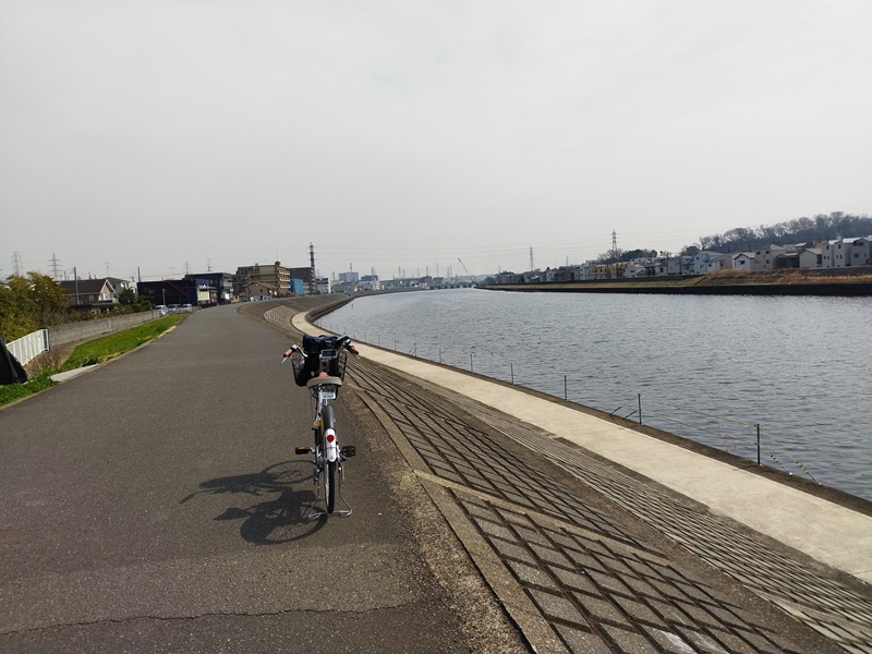 今回は3月13日、川崎市多摩区の自宅から鶴見川サイクリング道路を下り、地図の左側(3)から(5)あたりまで走行しました。そこでお昼の休憩を取って時計を見たら、午後2時を過ぎていて、この先のコースに向かうと、帰宅する元気がなくなりそうなので、その日は帰宅することにしました。