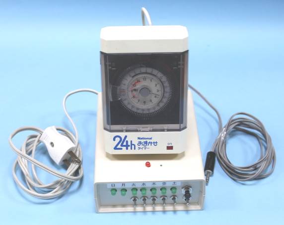 これまでは市販の24時間タイマー(写真上部の機器)だけで毎日所定時刻に起動してました。